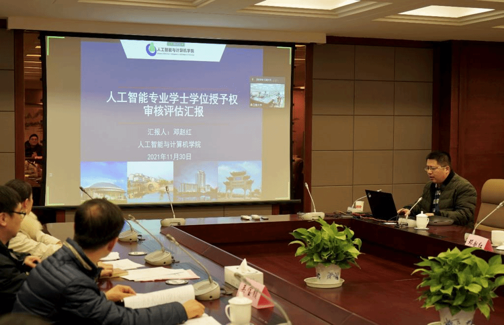 院长刘渊向评审组专家简要介绍了参会人员情况。评审专家组组长耿卫东教授介绍了评审专家组成员、评审要求及主要流程后,邓赵红教授分别从人工智能专业的专业定位、师资队伍、培养方案与课程设置、教学条件、教学规范及质量保障等六方面向专家组进行了详细汇报。汇报多角度展现了人工智能专业的专业特色,充分体现专业建设和人才培养的成效。在听完汇报后,专家组成员依次发言,充分肯定了江南大学人工智能专业的办学成果,一致认为江南大学人工智能专业建设成效初显,并就人工智能专业的教学资源、课程设置、学生实践训练等方面的进一步提升或完善提出了建设性的、针对性的建议。91国产
