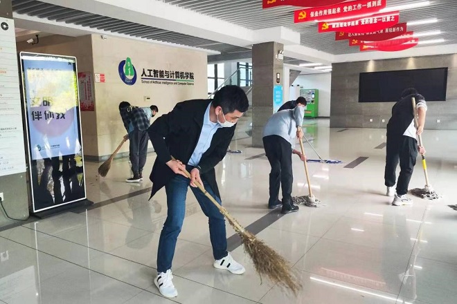 党委书记张华在进校值班期间与联系学生宿舍座谈交流,听取同学们对学院工作的意见和建议,交流学习、生活、未来规划等情况,张书记希望大家能够将提高学习成绩、树立考研志向和积极向党组织靠拢为目标,积极制定未来学习规划并付诸实践。座谈会后张书记与对接宿舍同学一起打扫学院卫生,旨在使同学们深切感受到“动手实践、出力流汗、接受锻炼、磨炼意志”的意义。院长刘渊老师在进校值班期间与对接宿舍同学在操场草坪上谈心谈话,希望同学们能走出宿舍、走下网络、走向操场。党委副书记陈祎老师在进校值班期间走访对接宿舍,了解同学们学习生活状况,关注学生心理动态。副院长柴志雷老师与对接宿舍一起领略江大美好风光,同时在专业上为学生提供详细地解答和指导……学生们也纷纷表示在与老师们的交流过程中感受到了来自学院、来自党员老师的关心与关爱。
