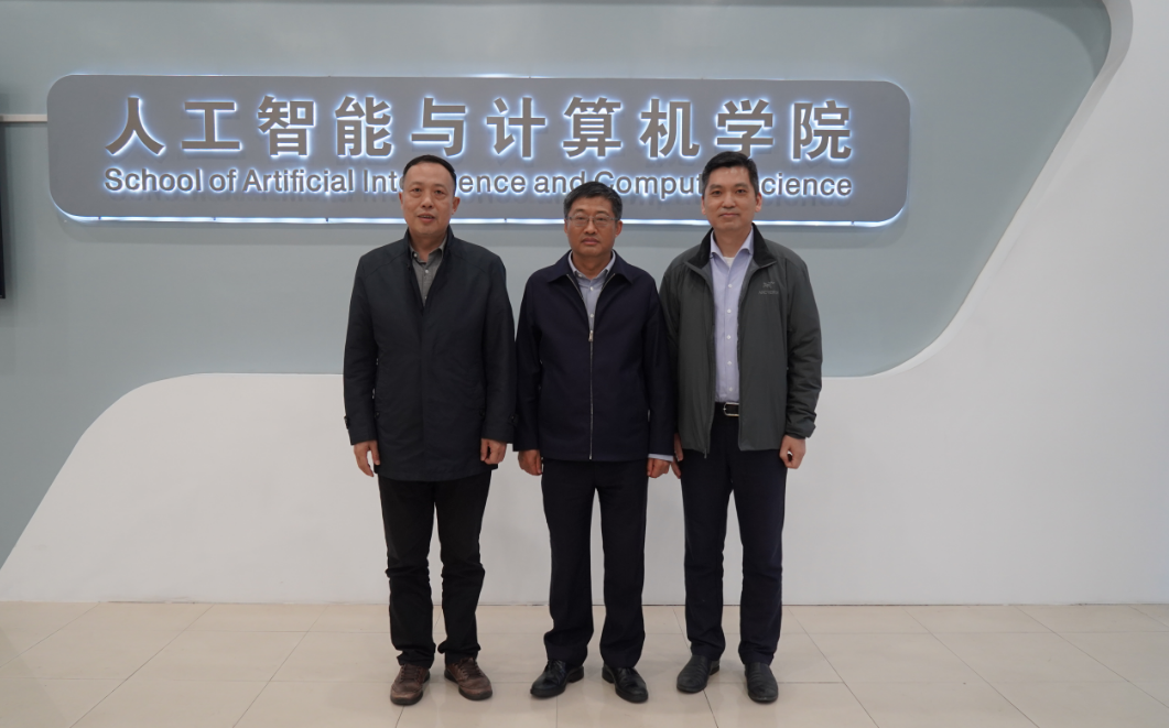 陈校长与院长书记就学院事业发展和学科建设等情况进行了交流。陈校长对学院在第七轮任期中取得获批一级学科博士点、国家级科研平台、开办人工智能新专业等标志性工作成果以及展示出的良好精神面貌予以高度肯定。陈校长指出,要充分利用学院成立、整体搬迁等契机,进一步加强学院事业发展的基础设施建设,加强学院的整合和融合,充分调动师生积极性,凝心聚力,促进学院和谐、健康发展。陈校长强调,学院上下要积极贯彻落实党的二十大精神,认真落实立德树人根本任务,要进一步加强师资队伍建设,重点引进和培养高层次人才,要瞄准国家战略特别是无锡市地方社会经济发展需求,推动“大团队”建设,要不断凝练学科方向,加强学科交叉,要在人工智能领域取得新的标志性成果,要在学科建设方面获得更大的突破。