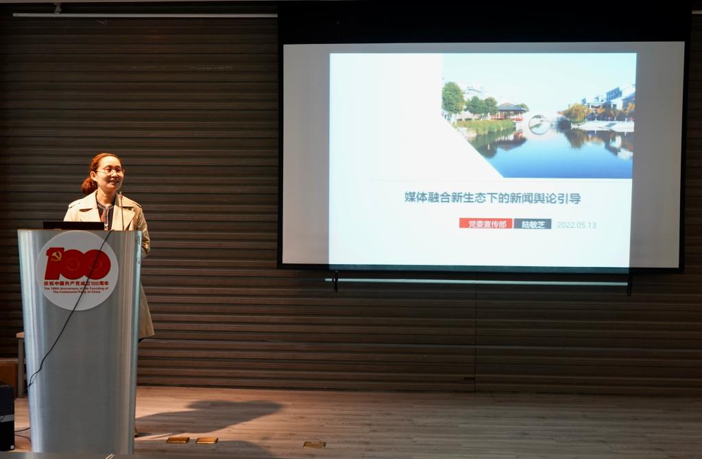 校党委宣传部副部长陆敏芝以《媒体融合新生态下的新闻舆论引导》为题,阐述了新形势下融媒生态的新变化,应对融媒生态的新挑战,以及如何开展融媒生态下的宣传。报告深入浅出,生动易懂,对当前社会环境下宣传工作面临的新问题进行了总结和分析,并就如何做好宣传工作提出了建议、给出了指导。