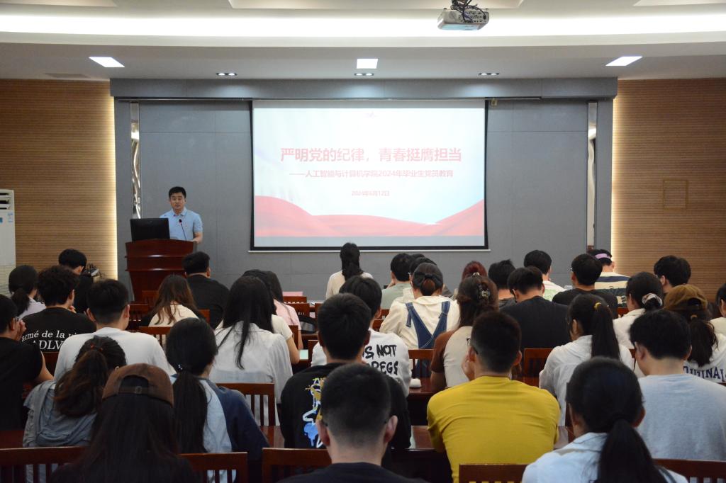 人工智能与计算机学院扎实开展党纪学习教育,高度重视把好党员“出口关”,将学纪、知纪、明纪、守纪的要求打包装进学生党员的毕业行囊,引导毕业生党员扣好纪法“第一粒扣子”,坚持用党的纪律校准思想之标,调整行为之舵,绷紧作风之弦,在与纪法同行的征途上,跑出青春加速度。