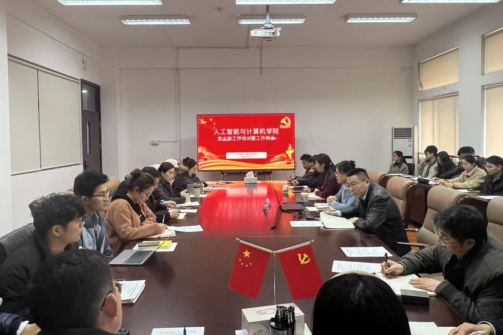 开展新学期基层党支部培训暨支部工作例会,校党委组织部副部长田卫平作党建业务培训,学院党委书记魏珍吉、副书记王莉莉,以及学院基层党支部书记和支部委员共计40余人出席活动。