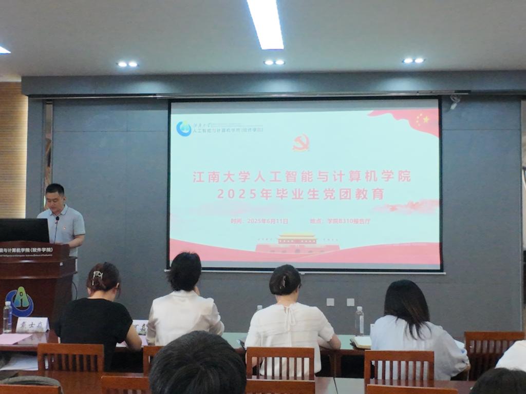 在B310报告厅召开2025年毕业生党团教育大会。学院党委副书记兼副院长王莉莉、专职组织员缪可嘉、学工办主任兼分团委书记王园园、辅导员杨玉莹出席会议,会议由辅导员戴士焱主持。