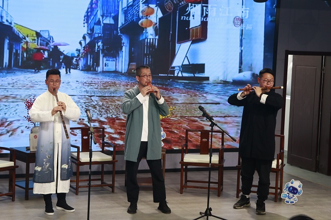 艺术家葛强、史君超、蒋臻熠埙进行箫笛演奏《忆江南》