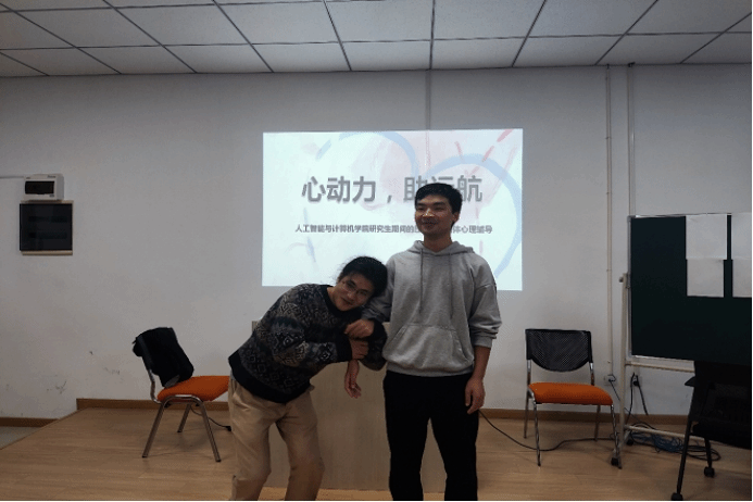 心理辅导员杨玉莹在信息楼B118学生团体辅导室带领20余名硕士开展了以“心动力,助远航”为主题的研究生期间的压力调试团体心理辅导。