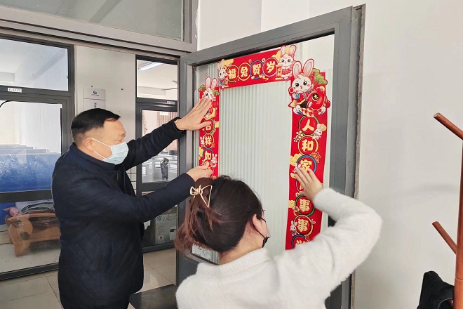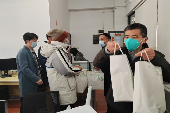 首先,学院领导分别致新春贺词,为留校坚守科研和学习一线的老师和同学们送上新春祝福,也鼓励大家留校科研的同时也要注意一自我防护,保持良好作息与学习习惯,合理安排时间,学校和学院会做好各项后勤保障工作。祝愿大家在校园里也能度过一个平安、顺遂、祥和的春节。接着,现场的老师们为留校学生赠送了新春慰问大礼包,和同学们一起张贴春联,将吉祥和祝福送到同学们的手中。