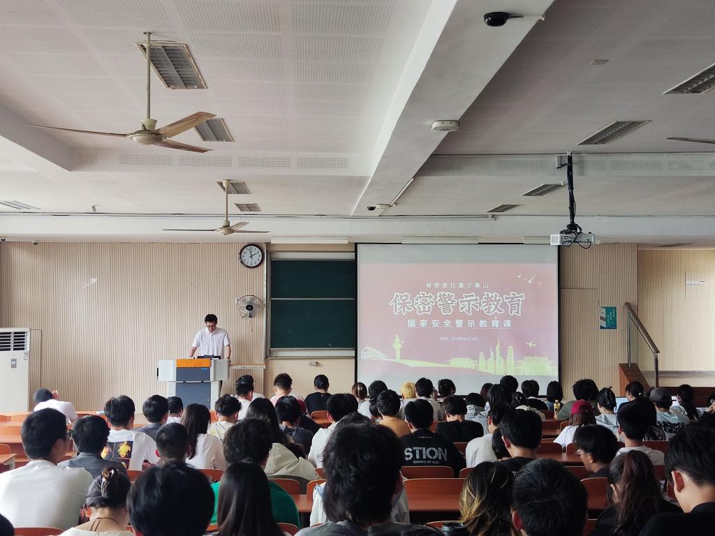 学院邀请雪浪派出所民警进校进行《保密警示教育》的主题报告,报告从保密知识知多少、校园保密如何做两个方面进行详细阐释,以经典案例再现的形式告诫学生要知法、守法,做国家安全的坚定维护者。