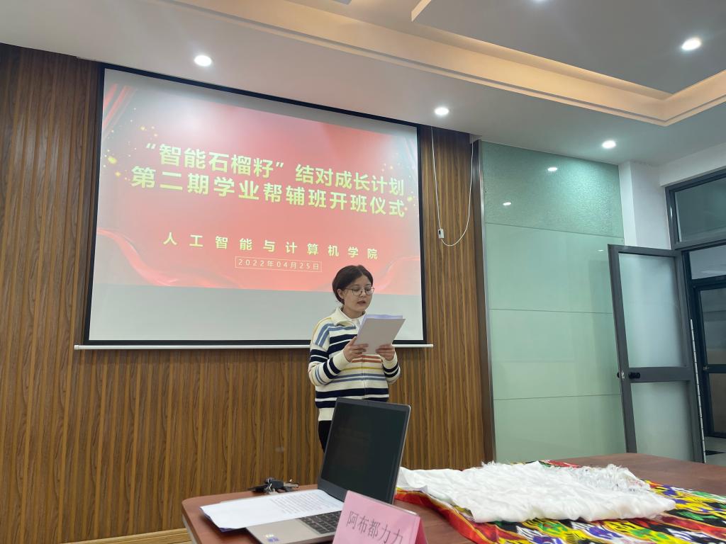 麦日帕提总结了第一期“智能石榴籽”结对成长学业帮辅计划的各项情况,并简要阐述了第二期的工作计划。她表示,第一期帮辅计划硕果累累,通过丰富多样的特色活动帮助同学们坚定理想信念,提升学习能力,取得了良好的成效,培育了一批优秀的少数民族学生骨干。第二期“智能石榴籽”结对成长学业帮辅计划将深入贯彻党中央关于民族工作的相关指示精神,总结成功经验,以坚定的决心和积极的姿态,为少数民族同学提供更优质的学习资源,搭建更广阔的成长平台。