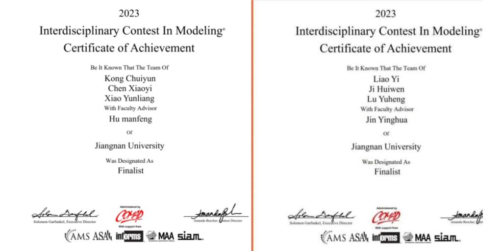 学子所在队伍表现出色,共获得提名奖(F奖)2项(江南大学共4项),国际一等奖(M奖)4项(江南大学共7项)。