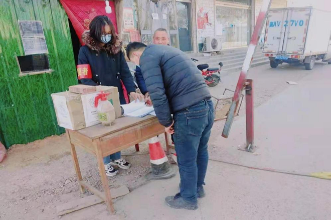 在社区工作人员的带领和指导下,王旭晴登记外来人员、测量体温,进行数据统计、填报防疫报表。她说:“志愿服务过程十分辛苦偶尔也有质疑的声音,但让我更加深刻地理解了什么是责任。许多和我一样的大学生在抗疫防控过程中自愿穿上防护服,天寒地冻站岗、默默无闻付出,新一代的年轻人正在用自己的实际行动和青年担当发出属于新一代的声音。”