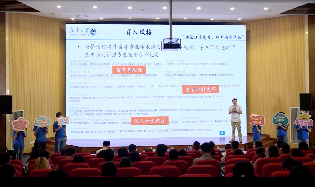 9月8日晚,江南大学第十七届“我最喜爱的老师”评选活动决赛在远东报告厅隆重举行。参赛的老师们围绕立德树人根本任务,从培根铸魂、科研创新、日常工作、为人师表等方面展示了他们教书育人的收获与成绩。评委根据老师们现场展示情况,从专业素养和师德师风等方面进行评分。最终,91国产