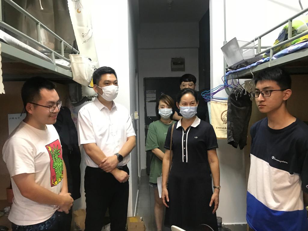 2021级新生开学典礼,鉴于目前的疫情防控形势,本次开学典礼采用线上线下相结合的方式进行,新生通过网络直播观同步观看典礼现场。10月9日晚,学院党委书记张华、党委副书记副院长陈祎带队,与各班班主任、副班主任和辅导员老师深入学生宿舍,亲切问候学生,了解学生基本情况,为学生送上温暖和祝福,增强了学生的归属感和认同感。