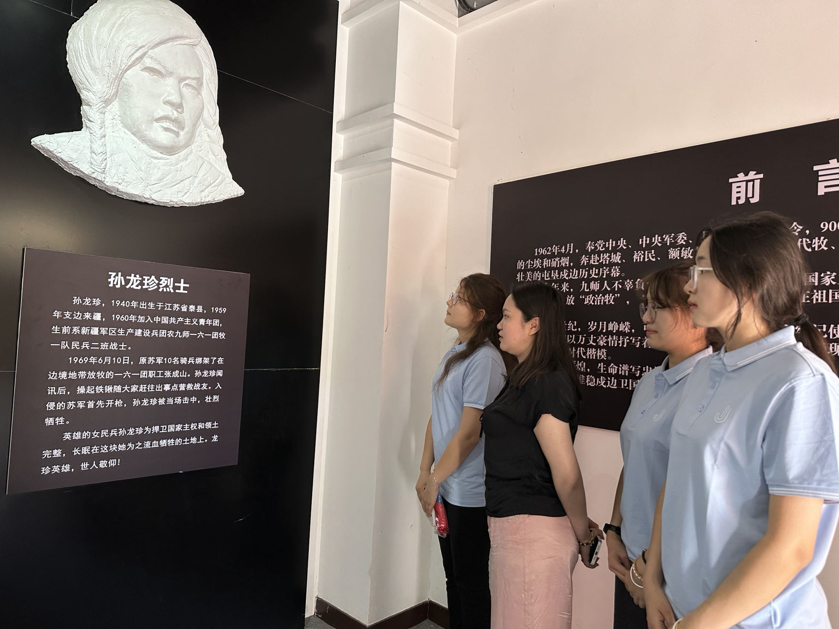 感悟守边精神,共筑民族团结。实践团成员先后参观了孙龙珍戍边事迹陈列馆、烈士陵园及小白杨哨所。在孙龙珍戍边事迹陈列馆中,他们通过参观烈士遗物、照片及戍边资料,上了一堂生动的爱国主义教育课。实践团走进西北边陲小白杨哨所,在小白杨哨所展览馆里,实践团成员通过参观展览的图文资料,详细了解边防将士们爱党卫国、无私奉献、用忠诚守护祖国边疆的感人故事的同时,切实感受到了他们“扎根边防、蓬勃向上”的戍边传统和卫国情怀,深刻体会到了“小白杨”精神的历史传承和新时代内涵。