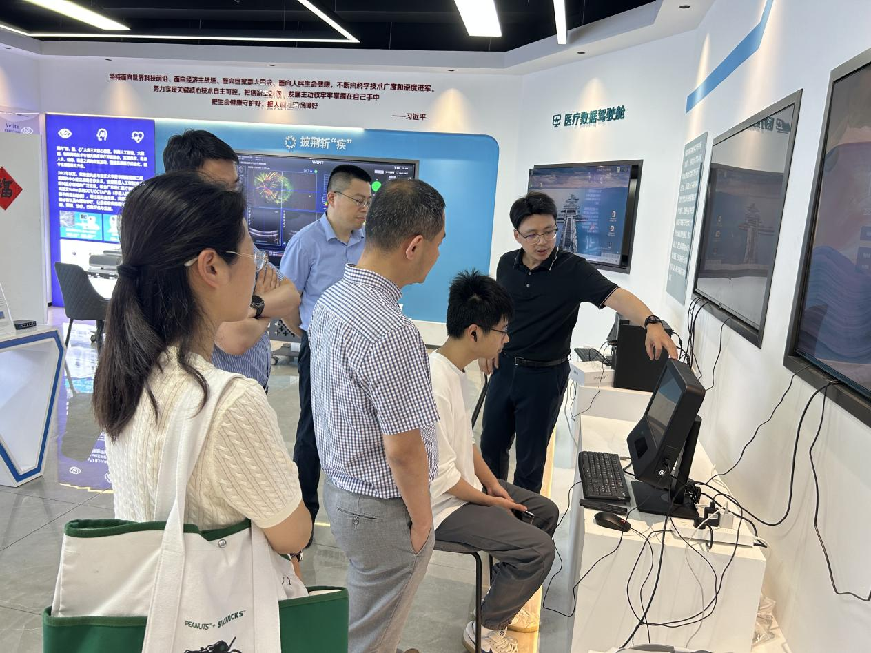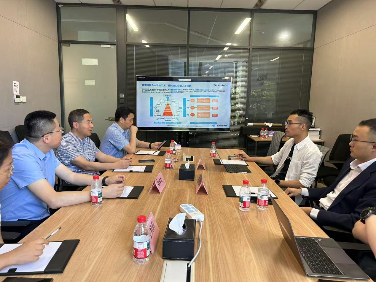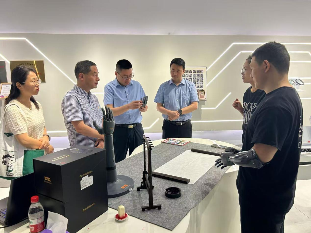 学院一行首先参观调研杭州六小龙”之一——强脑科技有限公司(BrainCo)。在强脑科技联合创始人单思聪、高级销售总监吴淑意的陪同下,学院一行参观了企业展厅,深入了解公司在脑机接口、人工智能、智能康复等领域的核心技术成果。讲解员重点展示了非侵入式脑机接口产品在教育、医疗、健康管理等场景的应用案例。随后,双方双方围绕合作开展座谈交流,学院在智能康养、模式识别等科研方向与强脑科技的技术及产品有契合的地方,也有一定的合作空间。双方还就科研及人才培养合作模式进行了深入探讨。