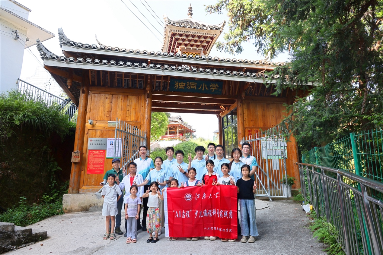 独洞村小学校长杨胜回顾了实践团到来后校园里发生的可喜变化,从孩子们眼中闪烁的求知光芒,到课堂上踊跃的发言与创造,都让他看到了科技教育带来的无限可能。他衷心感谢江南大学师生为学校带来生机与活力,并勉励独洞的孩子们将这份学习热情延续下去,继续努力。