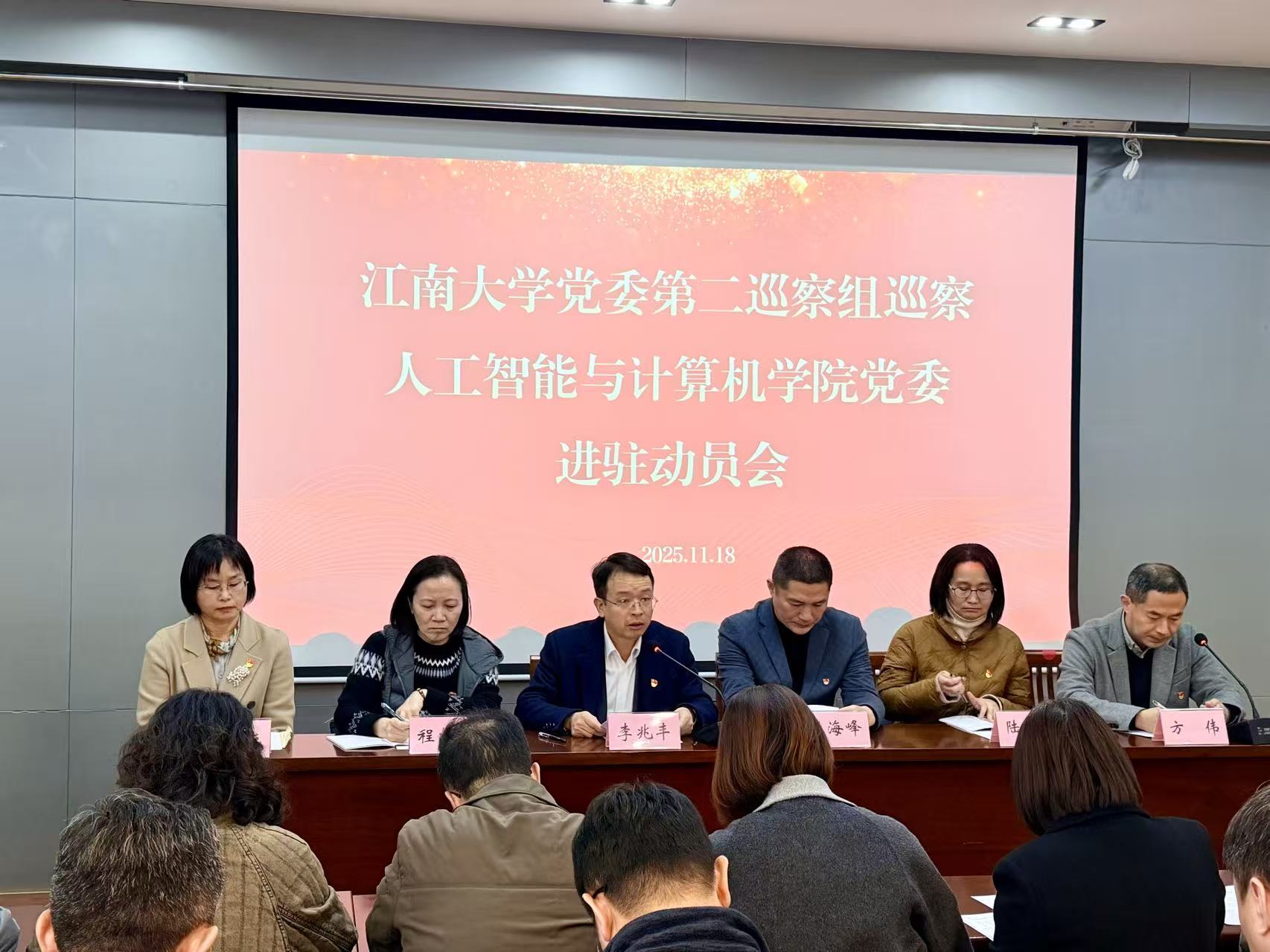 李兆丰作动员讲话。他指出,要提高政治站位,深入学习贯彻习近平总书记和党中央关于教育、关于巡视巡察工作的重要论述和重要决策部署,不断强化以巡察监督推动从严管党治党的思想自觉和行动自觉;要聚焦职能责任和“关键少数”,紧盯“四个落实”和“一把手”履职情况深入了解情况,不断增强巡察监督的震慑力、穿透力和推动力;要坚持实事求是和依规依纪依法,严格按照巡察工作实施办法等规定开展监督检查,不断推动巡察规范化法治化正规化建设。他强调,巡察是巡察组和学院党委共同的政治任务,要树立同题共答意识,增强巡察工作质效,为更好地服务和助推校院事业高质量发展注入巡察活力。