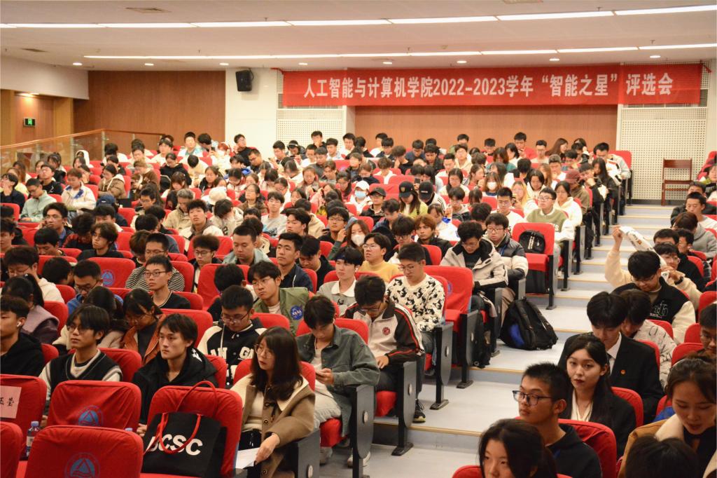 2022-2023学年“智能之星”评选会在图书馆305报告厅举行。学院党委书记张华,党委副书记、副院长王莉莉,副院长谢振平、宋威,计算机科学与技术系主任陈璟,数字媒体技术系副主任范超,班主任代表周世兵出席并担任评委,全体辅导员和大一、大二年级学生计400余人共同参与。
