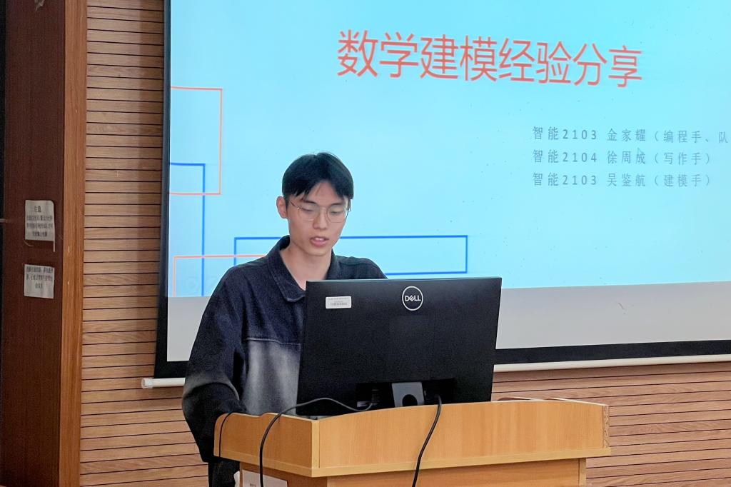 交流会上,5位学生党员围绕学业提升、科创竞赛、升学经验等主题作分享。智能2103班金家耀、智能2104班徐周成从自身参赛经验出发,解答了大家关于数学建模大赛在队员分工、各阶段学习侧重点、编程语言的选择、论文排版和润色技巧等方面的问题。他们表示,积极参加数学建模大赛能够提升自身问题分析能力、团队合作能力、时间管理及压力应对能力,是一项能多方获益的竞赛。