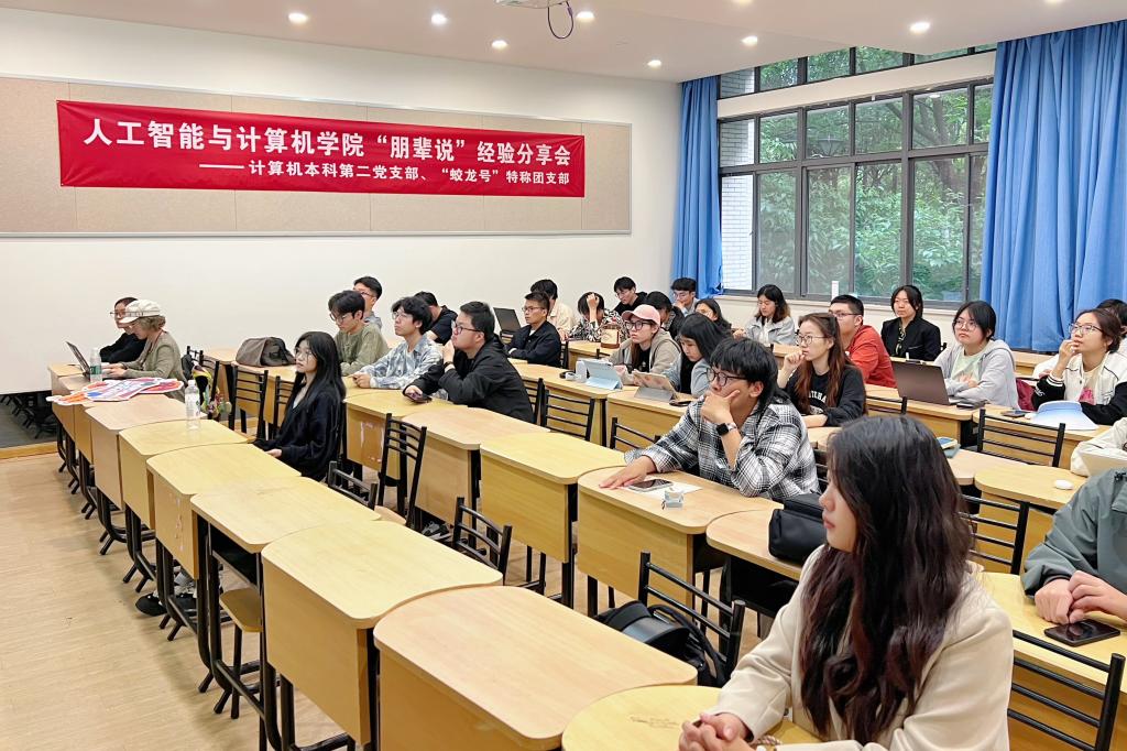 计算机本科第二党支部联合“蛟龙号”特称团支部举办“朋辈说”经验交流分享会。学院本科生辅导员米宁,计算机本科第二党支部孙宇、杨坤、史传正、金家耀、徐周成,“蛟龙号”特称团支部全体成员参加活动。“蛟龙号”特称团支部团支书王子菲主持活动。