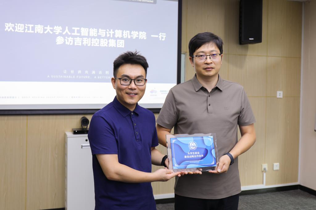 在吉利控股集团,陈琳一行在校园与雇主品牌华东大区经理甘晓霞的陪同下参观了展厅。座谈会上,校园与雇主品牌总监童部林介绍了吉利控股的概况及近年来人才招聘的变化趋势。王莉莉介绍了学院人才培养和学生就业概况。陈琳感谢吉利汽车对学生就业工作的大力支持,重点围绕信息技术岗位需求、岗位要素、引才政策等进行调研,他指出在人工智能与实体经济融合发展的大趋势下,双方要发挥各自优势,深度融合吉利雄厚的产业资源和学院在人工智能领域研究的技术成果及培养的人才资源,不断实现双向赋能。
