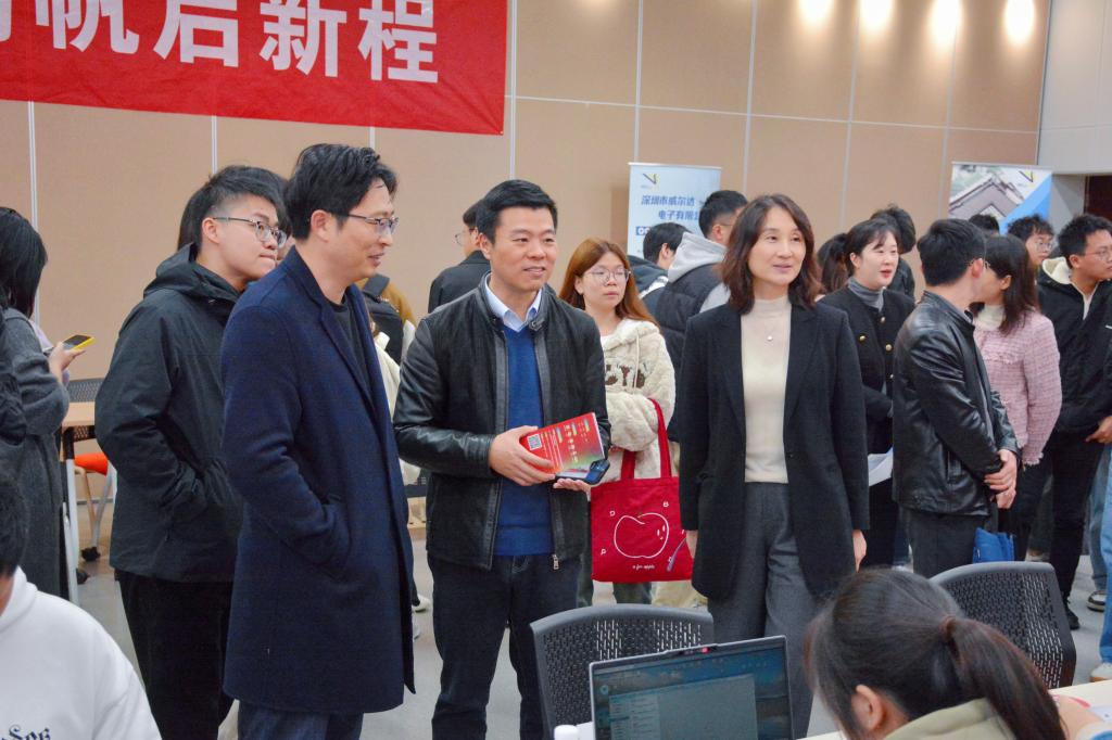 党委书记陈琳、物联网工程学院党委书记张华等莅临招聘会现场,与用人单位代表和参会学生亲切交谈。他们详细了解了用人单位的人才需求状况和对学院人才培养工作的宝贵意见与建议。同时亲切询问了参会同学的求职进展,鼓励他们积极拥抱就业市场,充分展现个人才能,把握机遇,找到自己满意的工作。