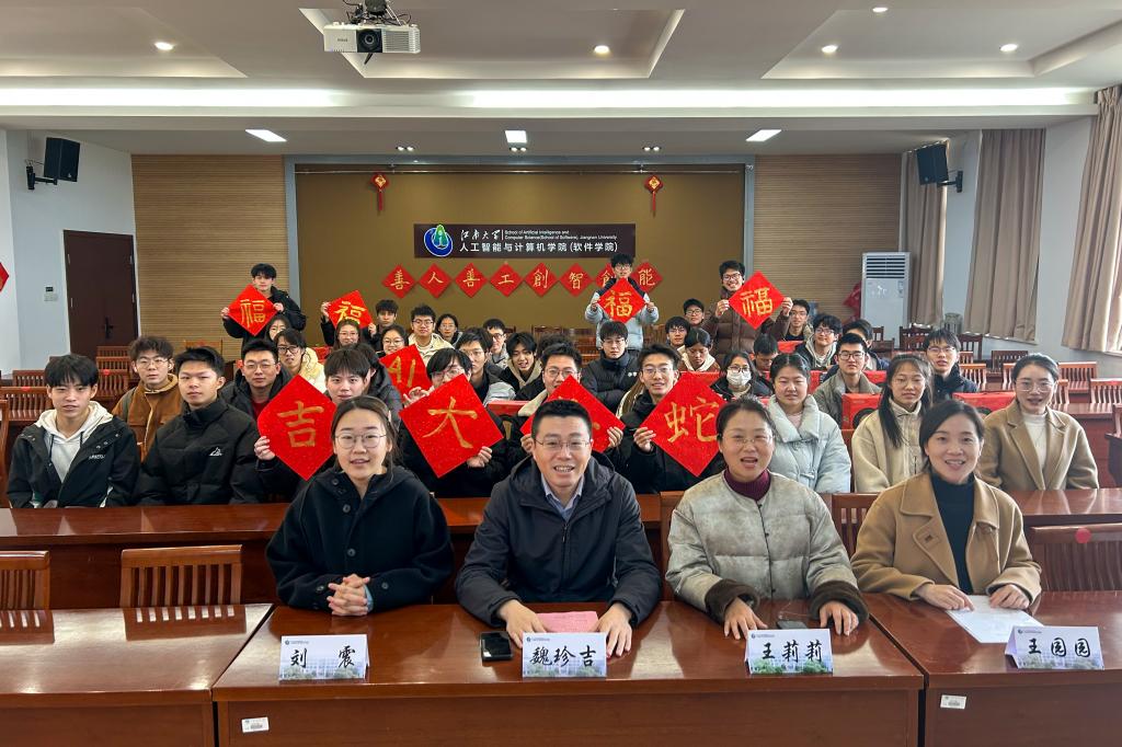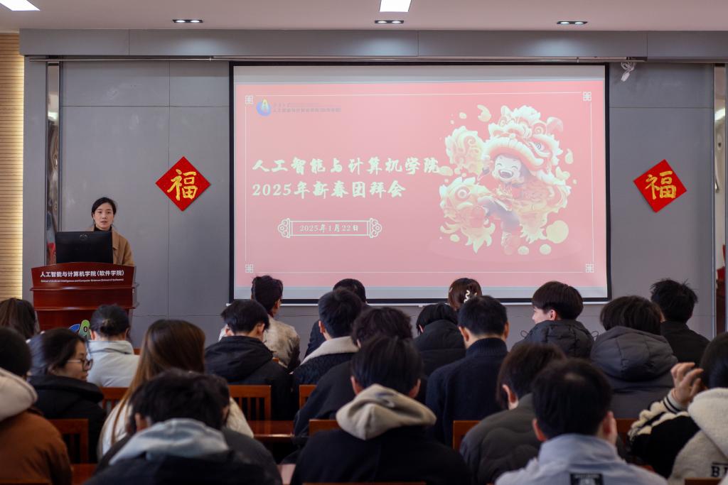 魏珍吉代表学院全体教职工,向寒假留校、为梦想拼搏的同学们致以新春的问候和美好的祝福。他首先为同学们因备战学科竞赛、钻研科研课题、参加就业实习等选择留校“充电”点赞,充分肯定他们追逐梦想、坚定奋斗的精神;表达了在新的一年,希望同学们在人工智能飞速发展的新时代,持续追求卓越,不断提升自我,努力实现突破,与学院共奋进,共同把握时代机遇的美好期许;提醒同学们牢记“安全心间记,平安中国年”,要互相关心、彼此照料,跟老师、家人保持联系,学校也将全力保障同学们的学习和生活需求,共同度过一段充实且有意义的时光。