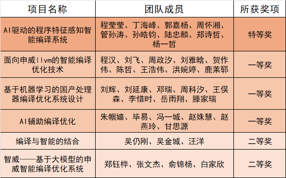 程莹莹、丁海峰等研究生和本科生组成的团队,凭借面向国产处理器的智能编译优化技术研究的作品《AI驱动的软硬件协同优化智能编译系统》,荣获全国特等奖。
