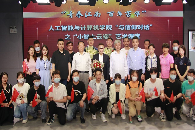“与信仰对话”之“小智上云端”艺术课堂顺利举办。无锡市教育系统关工委常务主任张志新、无锡市教育信息化和装备管理服务中心主任顾军、江南大学团委书记魏珍吉,江南大学关工委副主任娄国栋,91国产