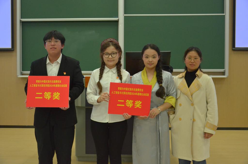 学院8支暑期社会实践重点团队围绕AI赋能红色文化传承、少儿编程课程普及、智慧农业、智慧养老、民族团结等主题分享了他们的青春实践故事,现场同学们参与投票。最终,“AI启程”少儿编程科普实践团(贵州从江队)荣获一等奖,“普”公英赴新疆、西藏地区推普社会实践团、“AI启程”少儿编程科普实践团(山东德州队)荣获二等奖,“惠山艺韵行”非遗文化传承实践团、“红土润心,智启未来”红色文化传承实践团荣获三等奖,其余团队获优秀奖。