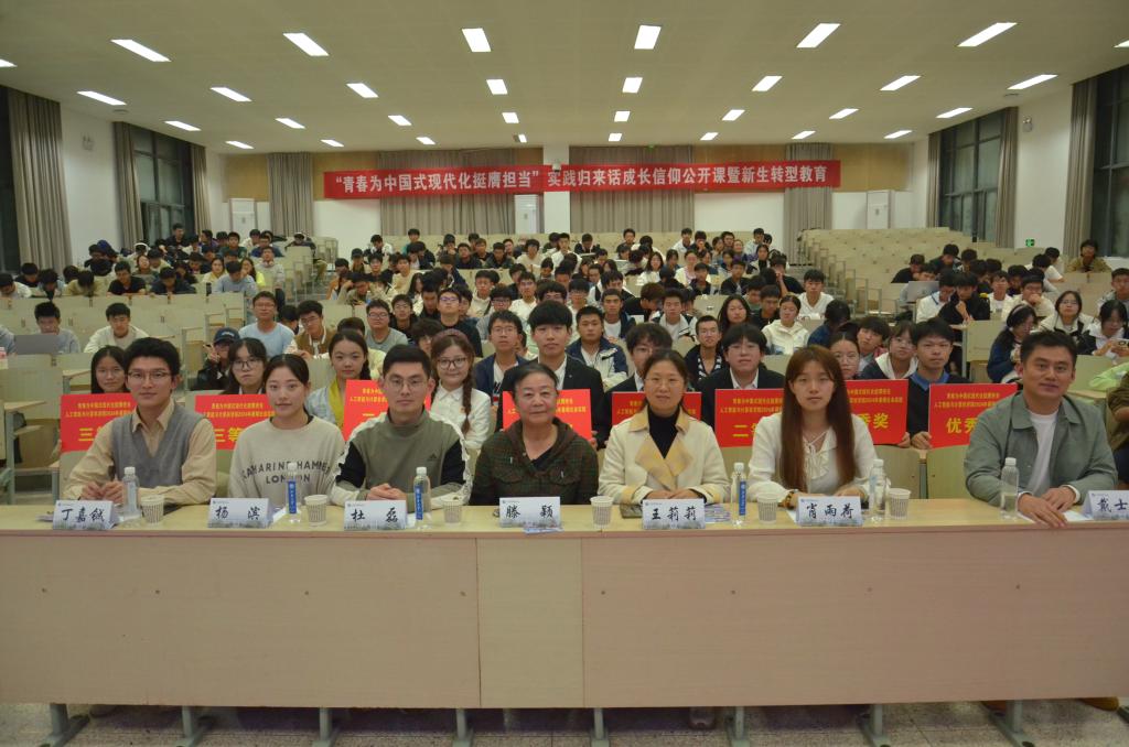 在2A127教室举办2024年“青春为中国式现代化挺膺担当”实践归来话成长信仰公开课暨2024级新生转型教育活动。学院关工委常务委员滕颖,党委副书记、副院长王莉莉,学工办副主任杜磊,智能2403班班主任杨滨,相关辅导员以及2024级新生参加活动。