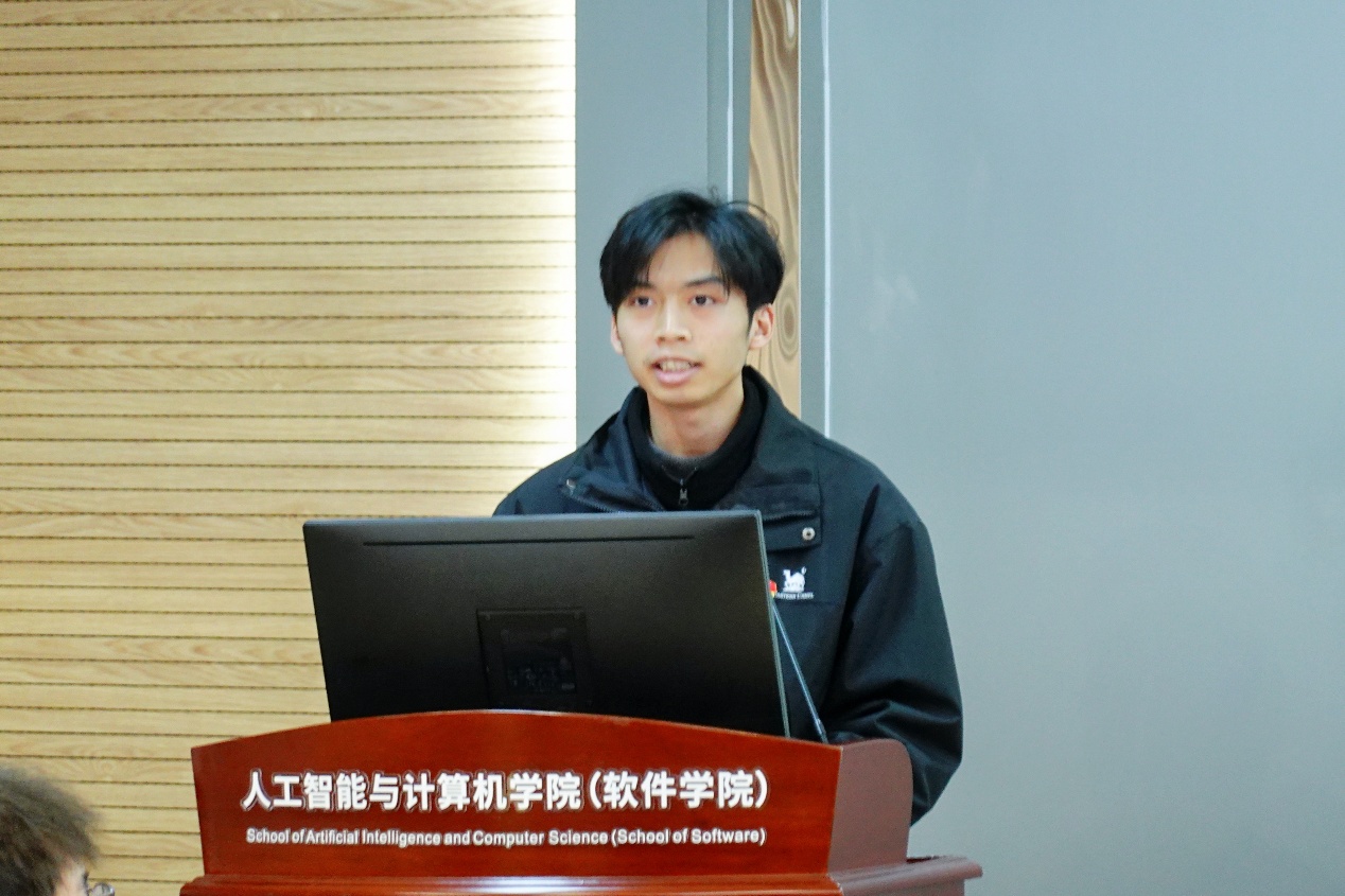 研究生第一党支部组织委员李民志汇报2025年支部工作情况。支部书记张文杰以《学习贯彻党的二十届四中全会精神:聚焦“人工智能+”战略》为题讲主题党课,重点围绕未来五年国家在加快人工智能等数智技术创新,突破基础理论和核心技术等方面的部署,阐释了加快实现高水平科技自立自强的前进方向和实践路径,号召智能学子争做“原始创新”的攀登者、“科技强国”的建设者和“智能向善”的守护者,为国家科技创新接续奋斗。支部成员、2022级博士生程春阳以《我在江南读博的日子》为题分享其读博期间的科研生活经历和成长感悟。